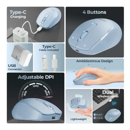 Foxin Wireless Mouse Flow 2.4G + BT (Flow) Blue